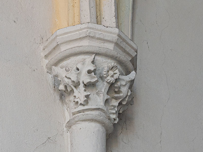 Das Langhaus ist zweigeschossig, die Seitenschiffe sind eingeschossig und haben je vier einfache gotische Spitzbogenfenster. Zwischen den Fenstern befinden sich Strebepfeiler. Das Fensterbankgesims ist im Ostchor um die Strebepfeiler herumgeführt.