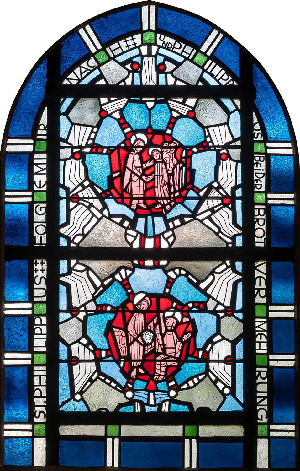 Schriftband: ST. PHILIPPUS FOLGE MIR NACH UND PHILIPPUS BEI DER BROTVERMEHRUNG.