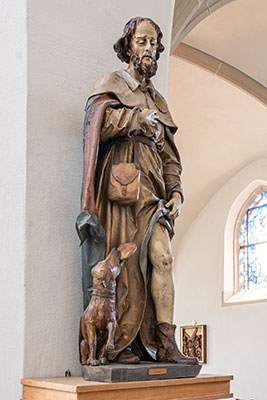 Rochus ist der Schutzheilige der Gefangenen und Kranken, der Kranken- und Siechenhäuser, der Ärzte, Chirurgen, Apotheker, Bauern, Gärtner, Schreiner, Pflasterer, Bürstenbinder, Totengräber und Kunsthändler, des Viehs,Schutzheiliger gegen Pest und Cholera, Seuchen, Tollwut, Fuß-, Bein- und Knieleiden und Unglücksfälle
